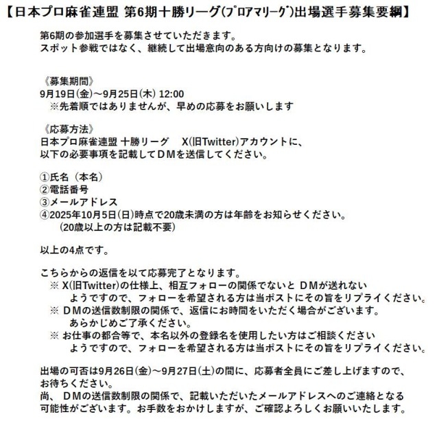 ©日本プロ麻雀連盟/X(Twitter) 日本プロ麻雀連盟 十勝(とかち)リーグ @Tokachi_league より